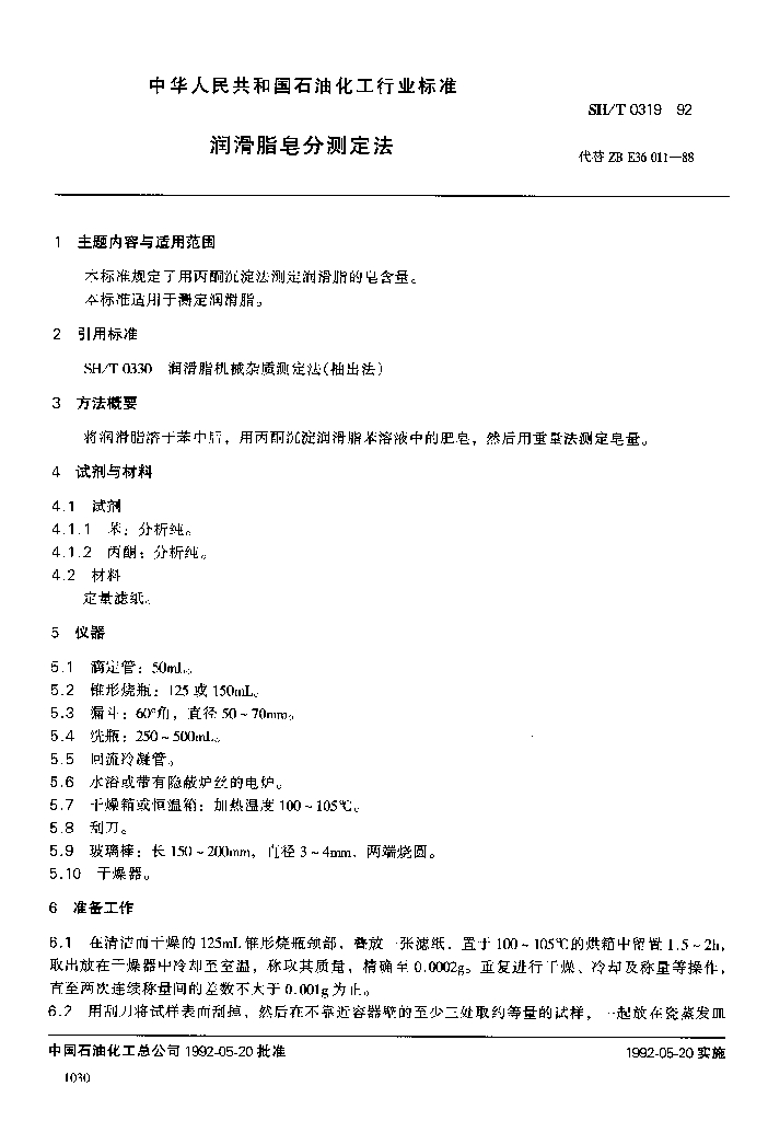 SH/T 0319-1992 润滑脂皂分测定法