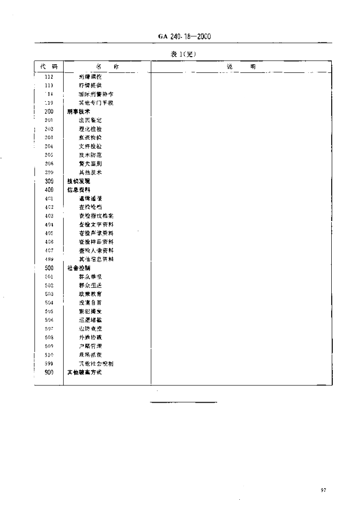 GA 240.18-2000 刑事犯罪信息管理代码 第18部分:破案方式分类和代码