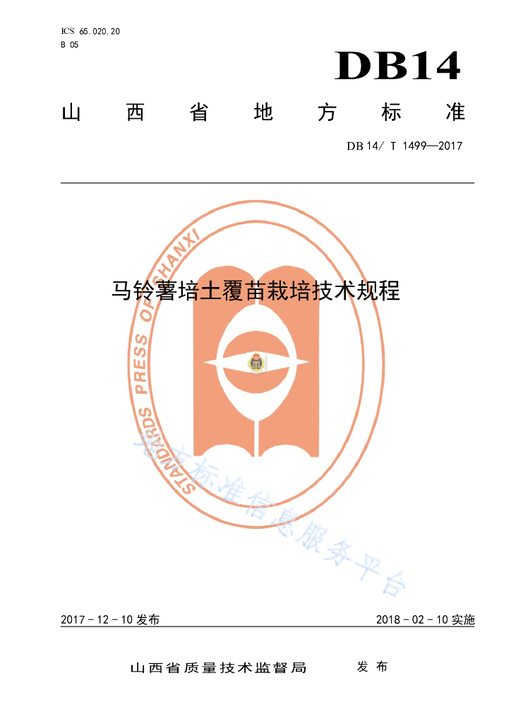 DB14/T 1499-2017 马铃薯培土覆苗栽培技术规程