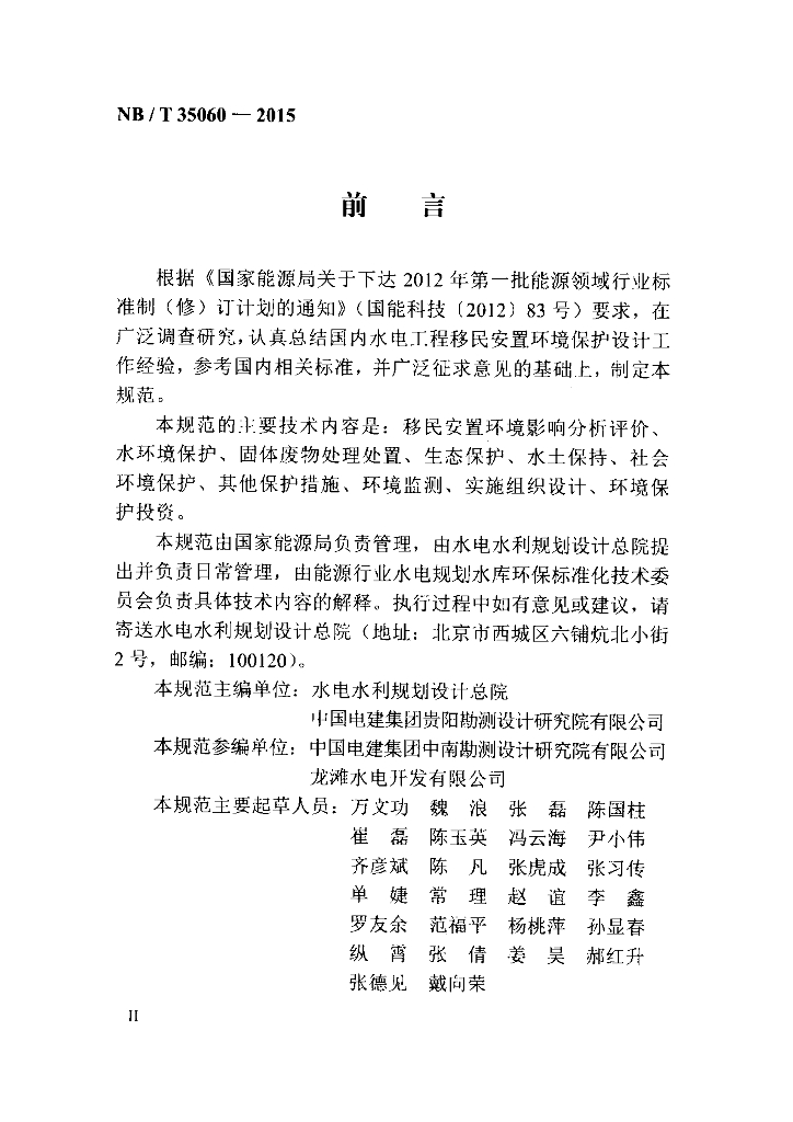 NB/T 35060-2015 水电工程移民安置环境保护设计规范