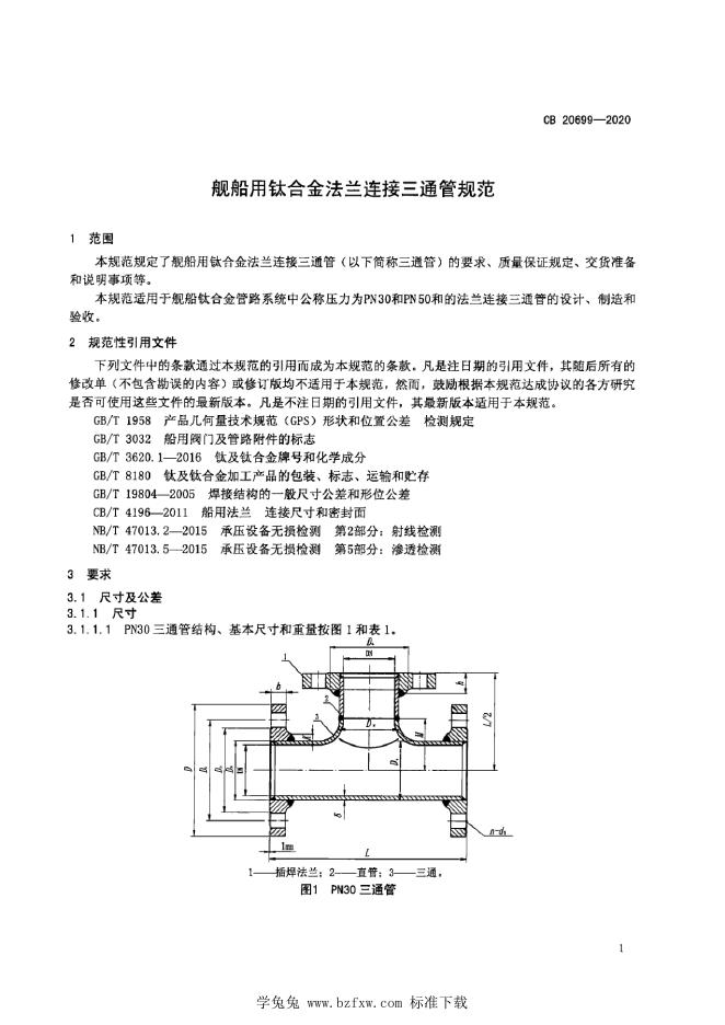 CB 20699-2020 舰船用钛合金法兰连接三通管规范
