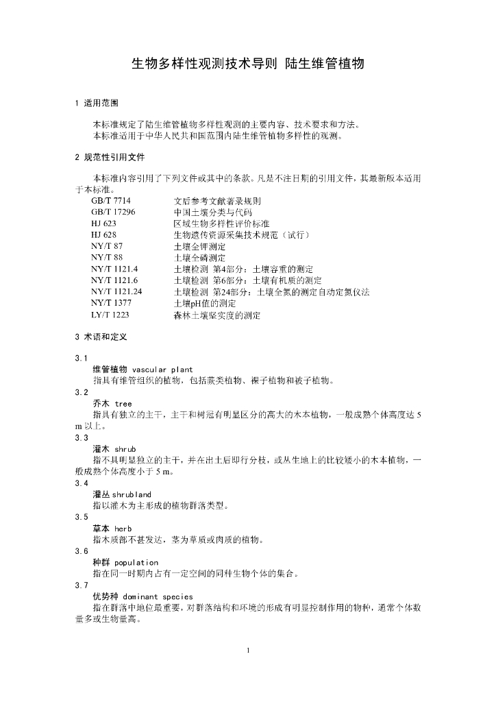 HJ 710.1-2014 生物多样性观测技术导则 陆生维管 植物