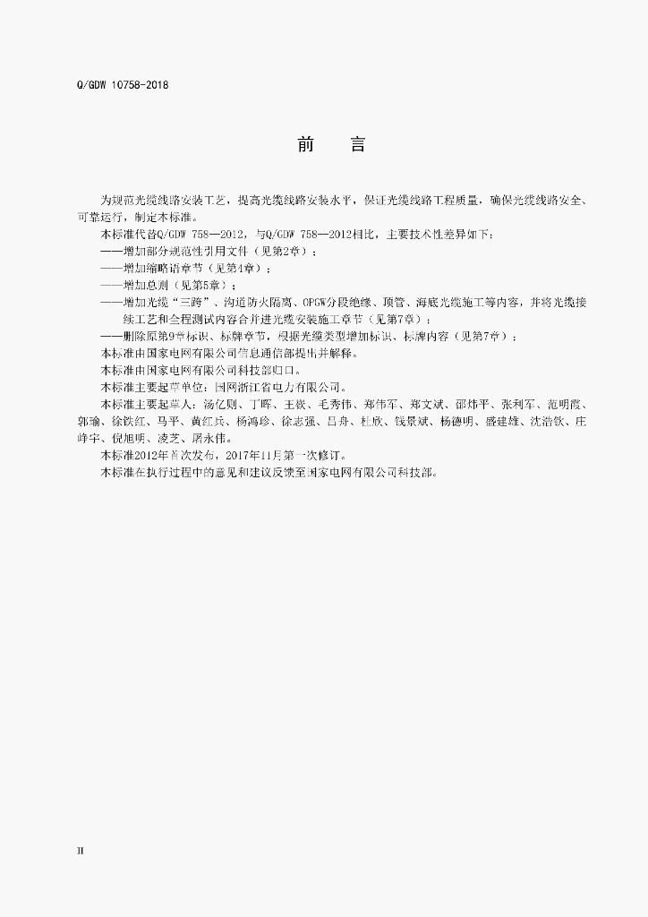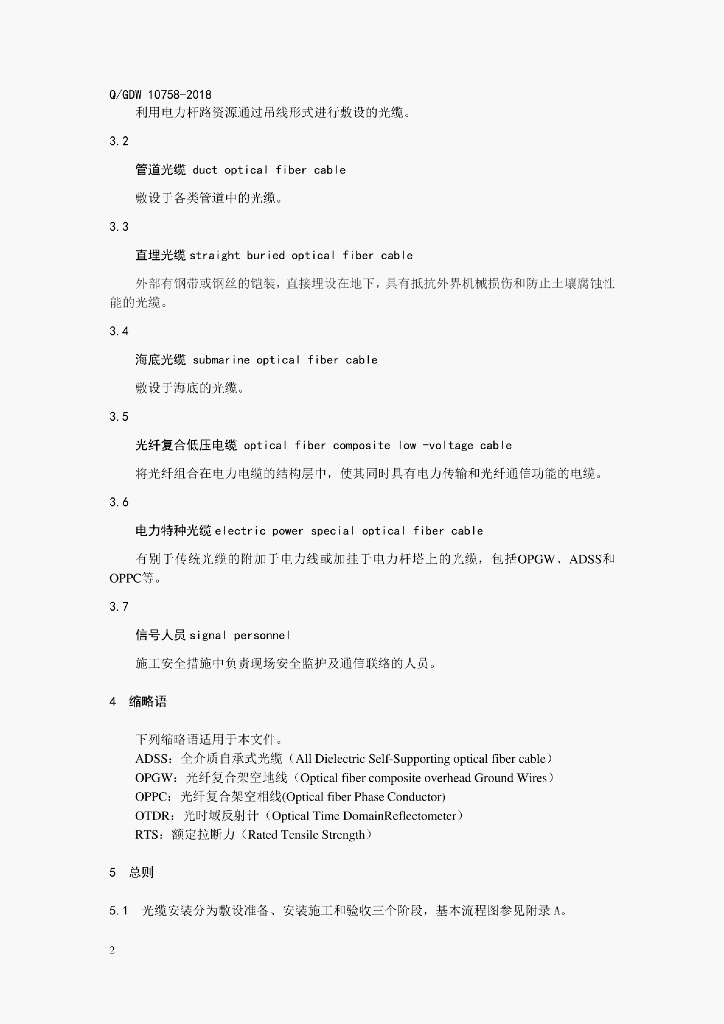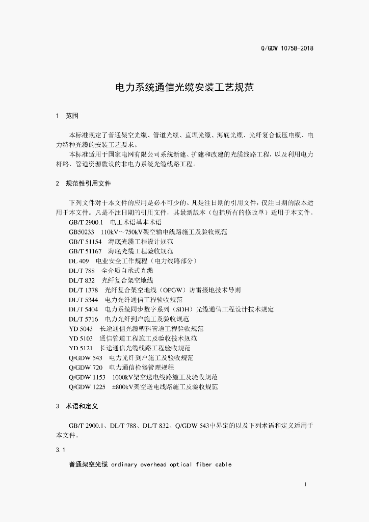 Q/GDW 10758-2018 电力系统通信光缆安装工艺规范