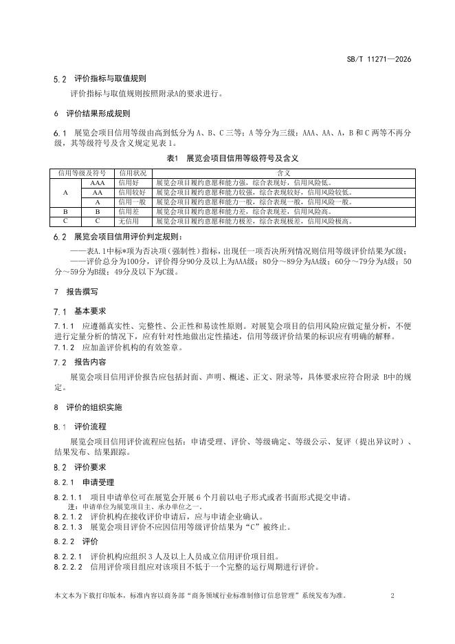 SB/T 11271-2026 展览会项目信用评价规范