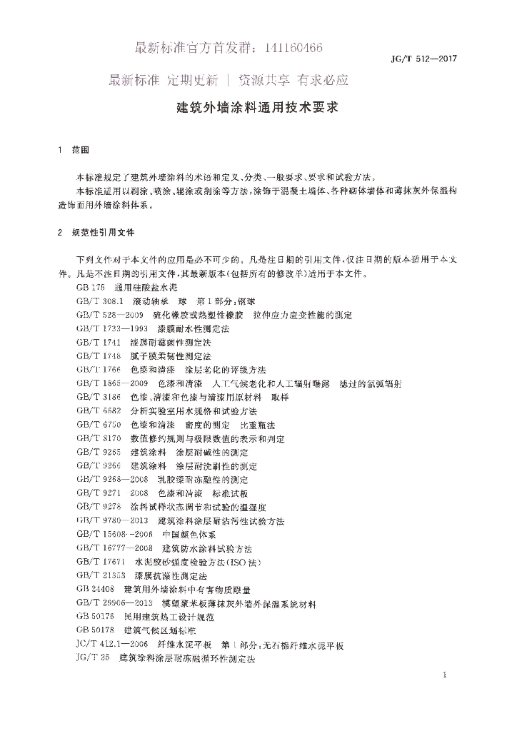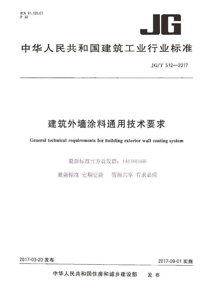 JG/T 512-2017 建筑外墙涂料通用技术要求