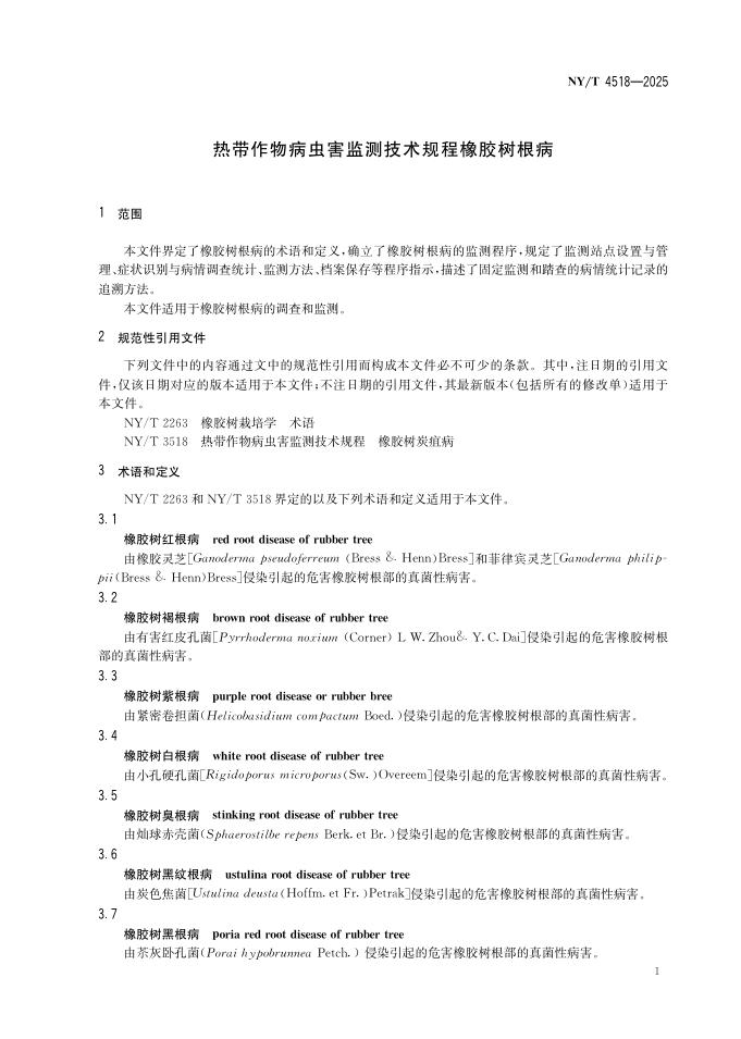 NY/T 4518-2025 热带作物病虫害监测技术规程 橡胶树根病