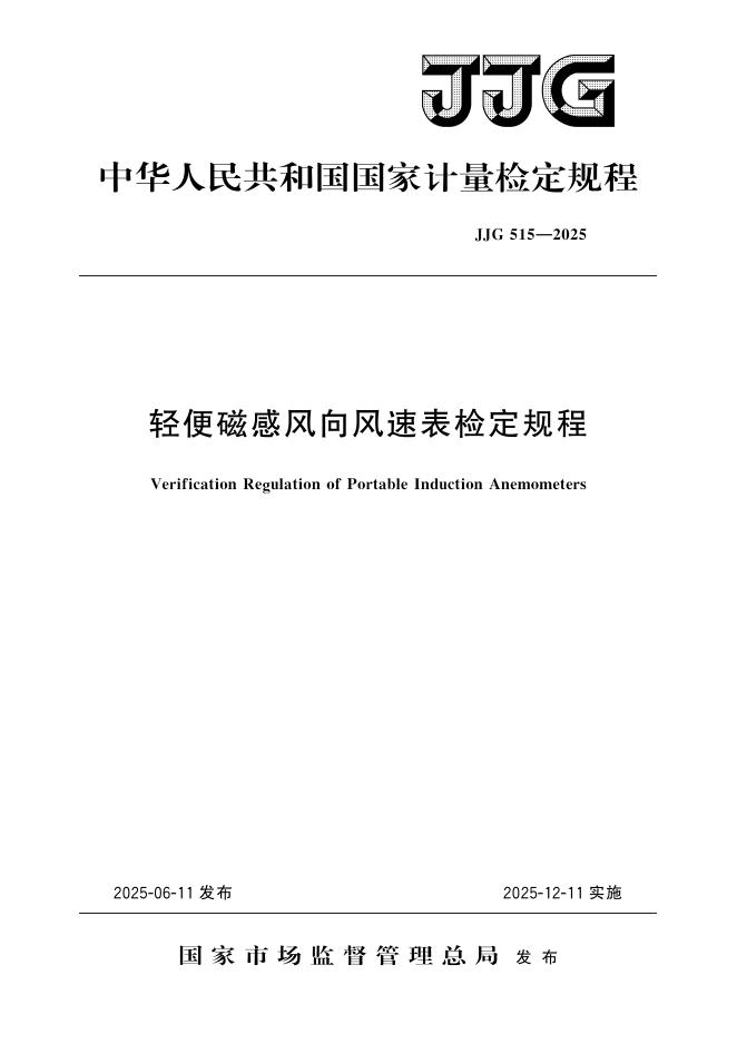 JJG 515-2025 轻便磁感风向风速表检定规程