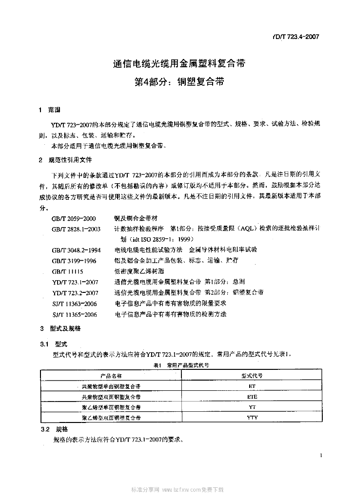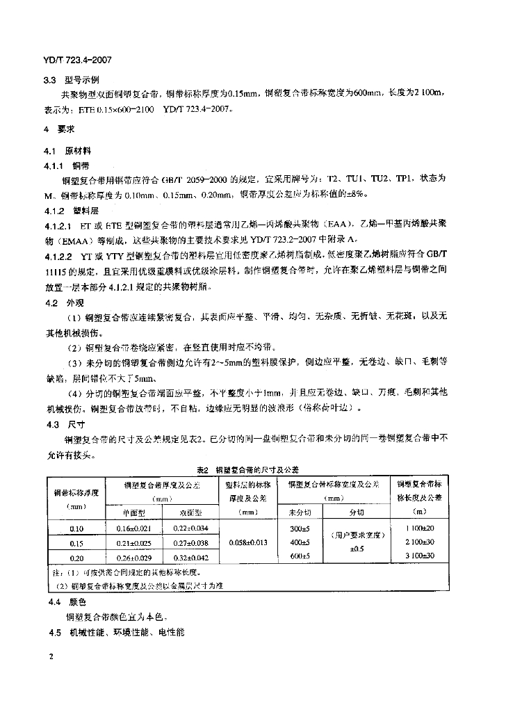 YD/T 723.4-2007 通信电缆光缆用金属塑料复合带 第4部分:铜塑复合带