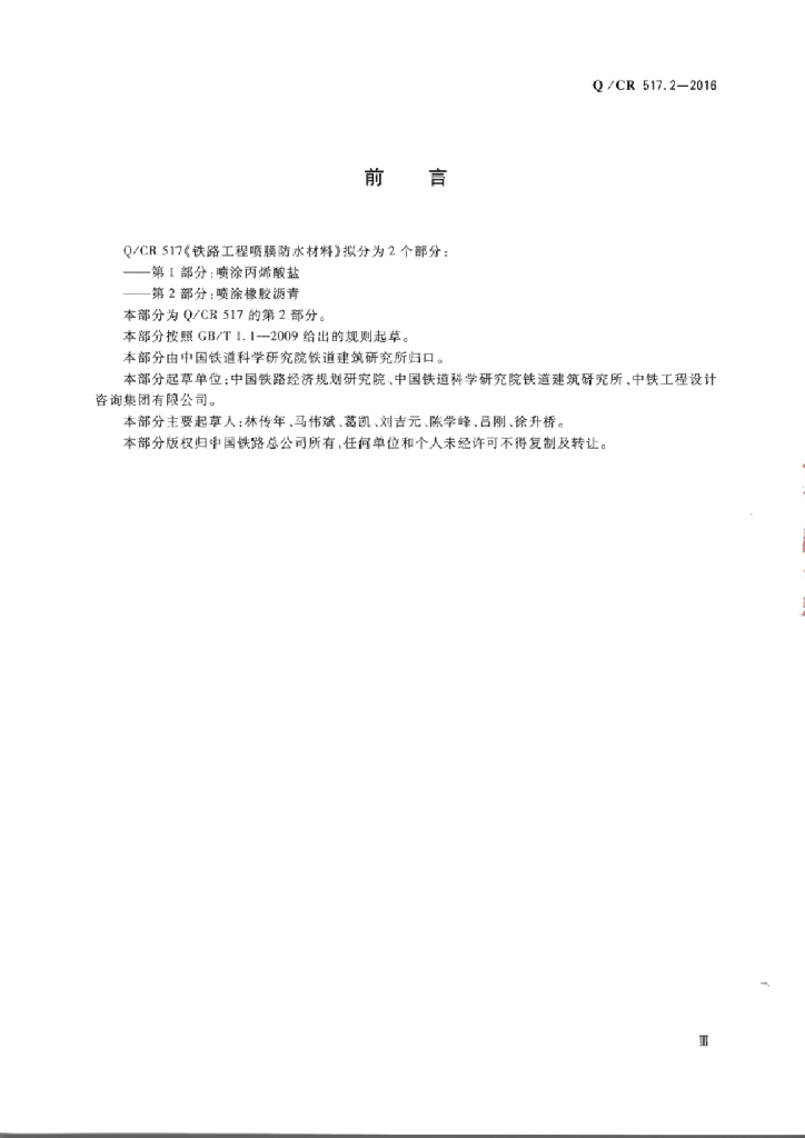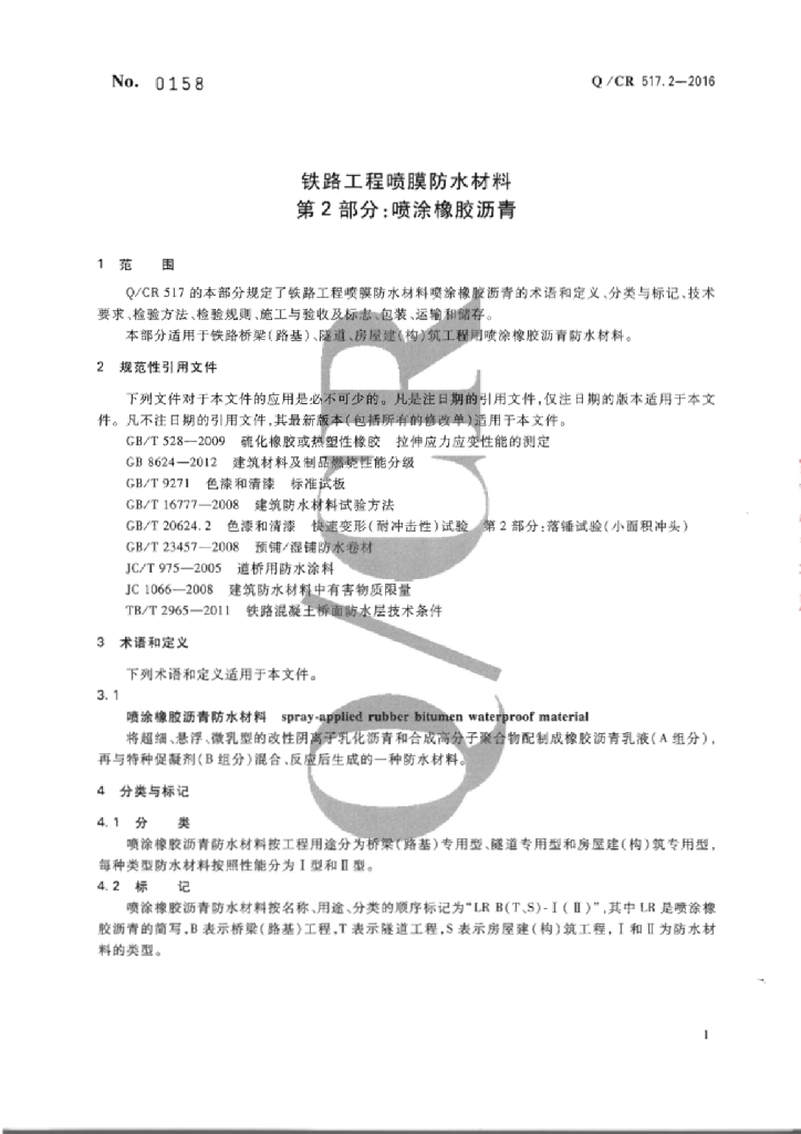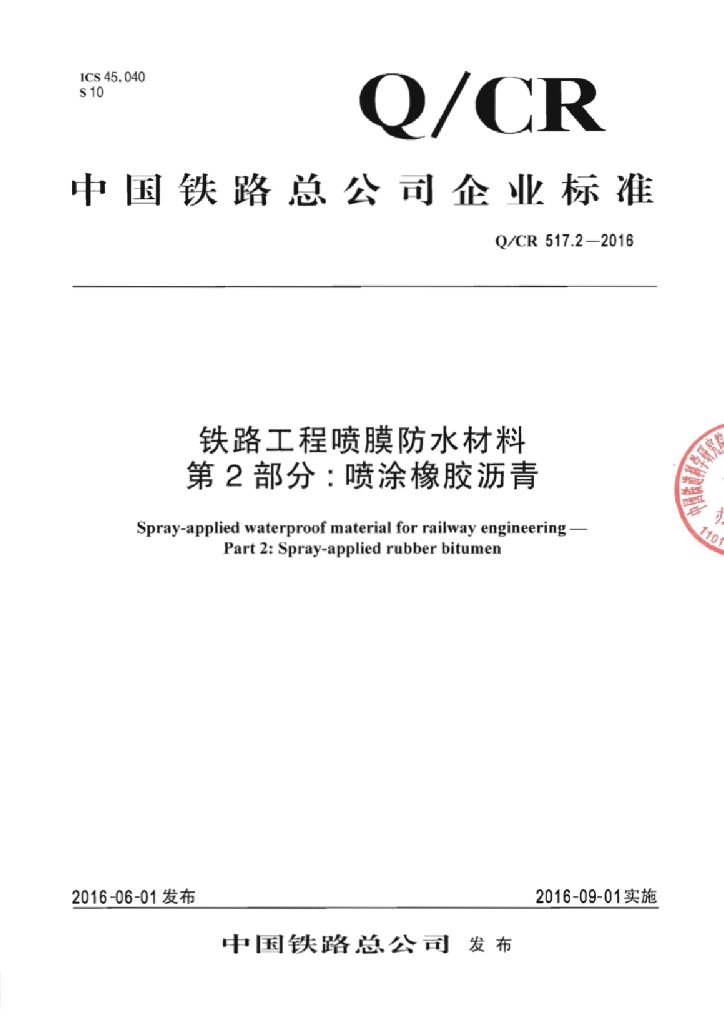 Q/CR 517.2-2016 铁路工程喷膜防水材料 第2部分:喷涂橡胶沥青