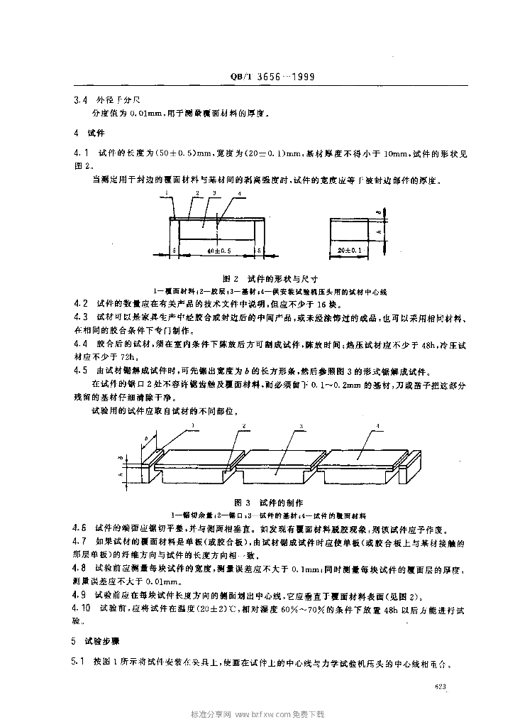 QB/T 3656-1999 家具表面硬质覆面材料剥离强度的测定