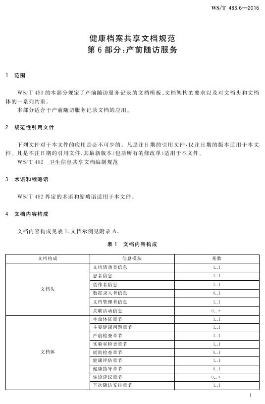 WS/T 483.6-2016 健康档案共享文档规范 第6部分:产前随访服务