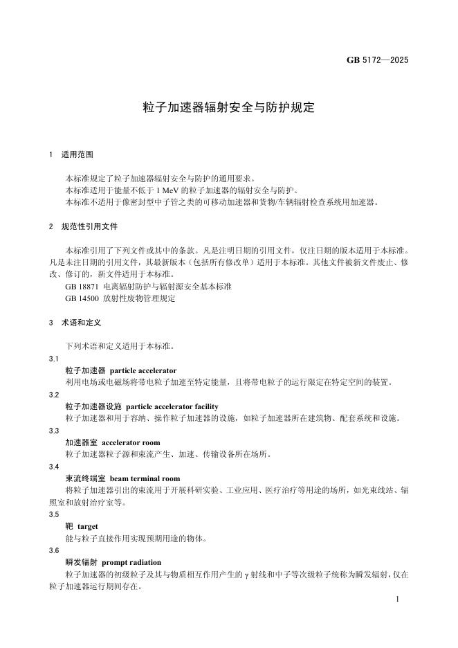 GB 5172-2025 粒子加速器辐射安全与防护规定