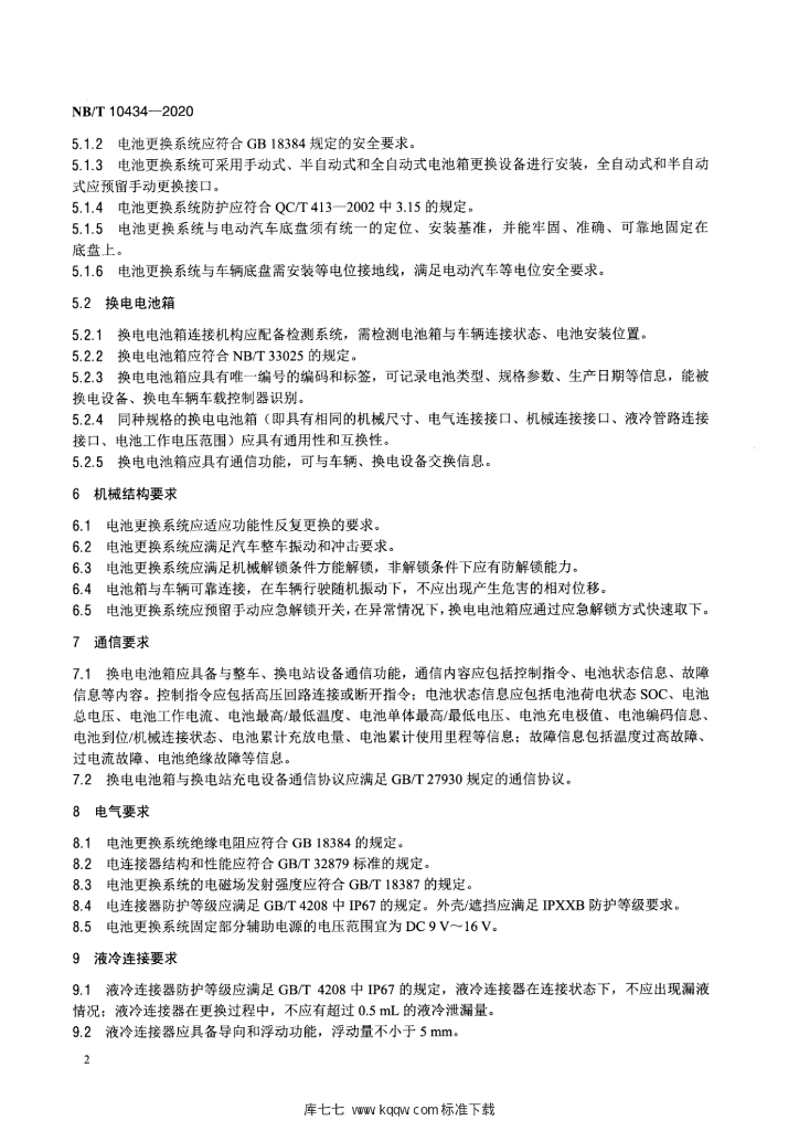 NB/T 10434-2020 纯电动乘用车底盘式电池更换系统通用技术要求