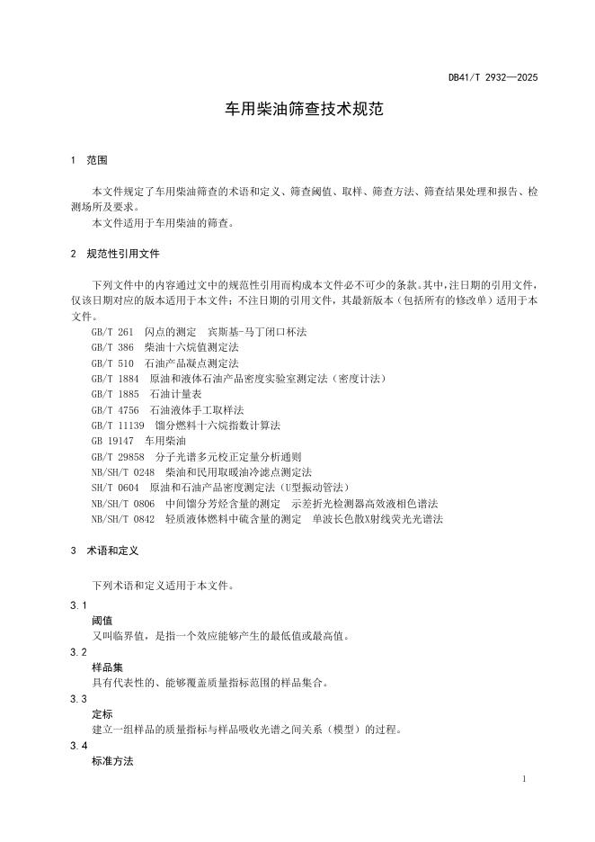 DB41/T 2932-2025 车用柴油筛查技术规范