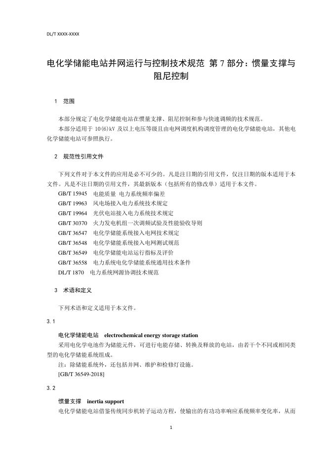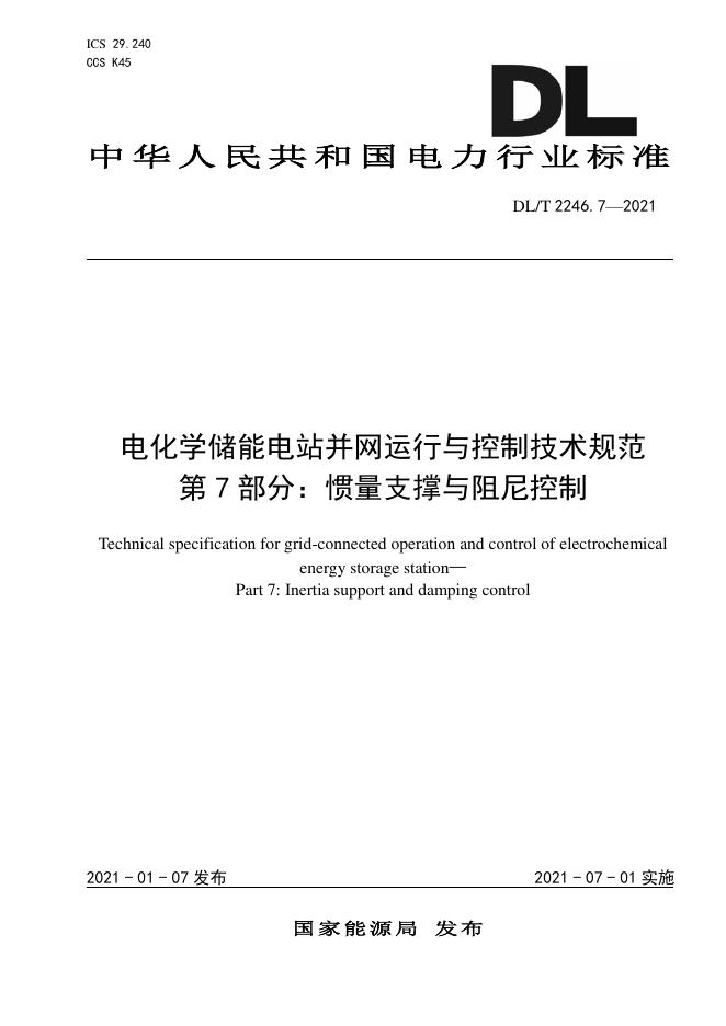 DL/T 2246.7-2021 电化学储能电站并网运行与控制技术规范 第7部分:惯量支撑与阻尼控制