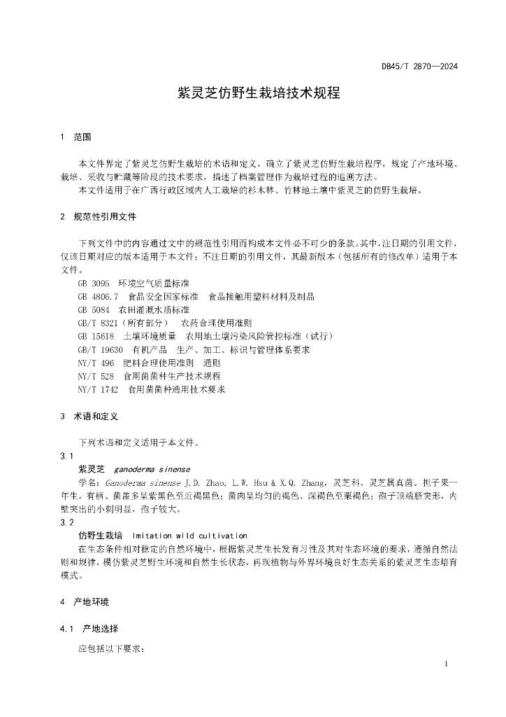 DB45/T 2870-2024 紫灵芝仿野生栽培技术规程