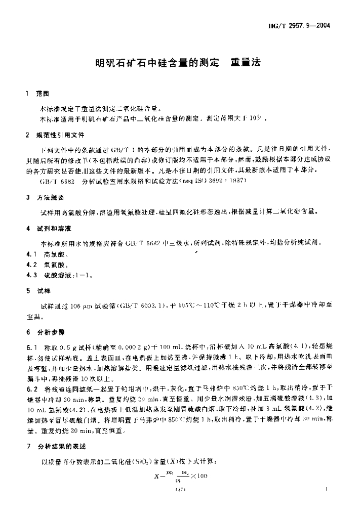 HG/T 2957.9-2004 明矾石矿石中硅含量的测定重量法