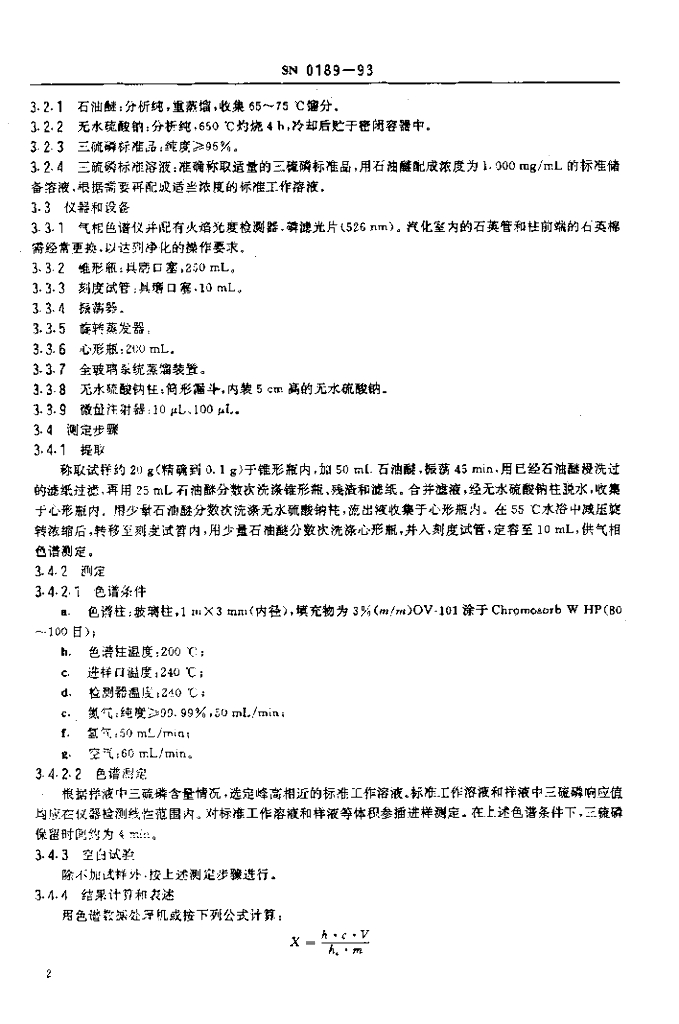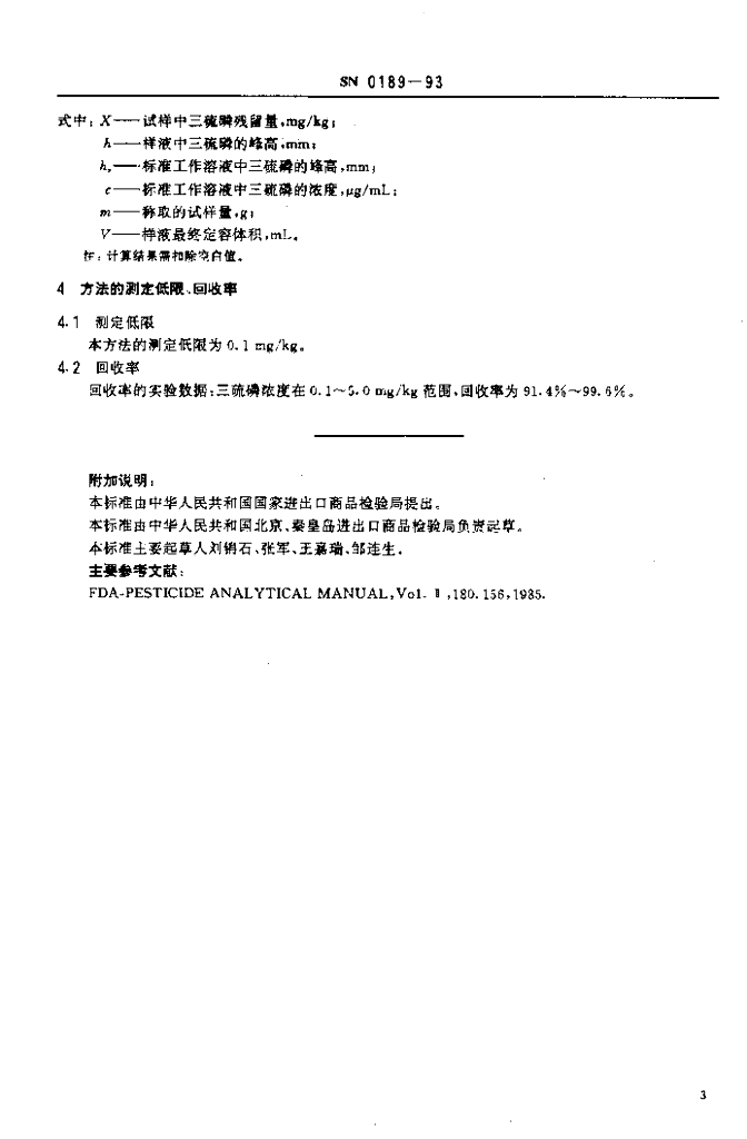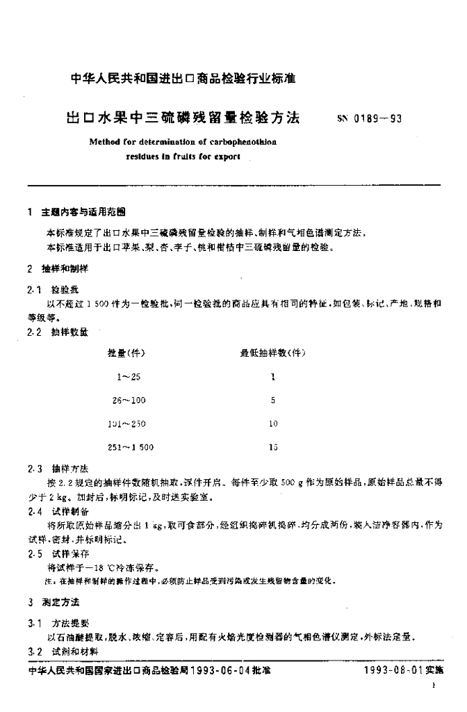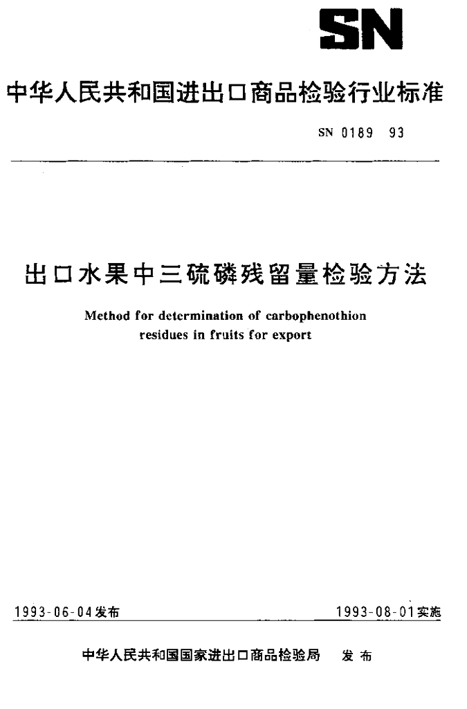 SN 0189-1993 出口水果中三硫磷残留量检验方法