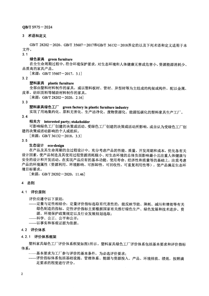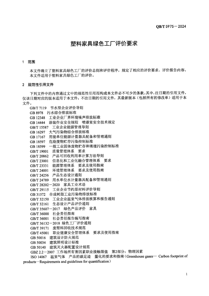 QB/T 5975-2024 塑料家具绿色工厂评价要求
