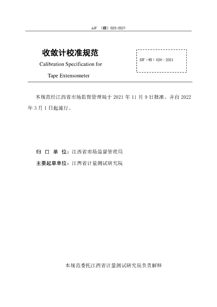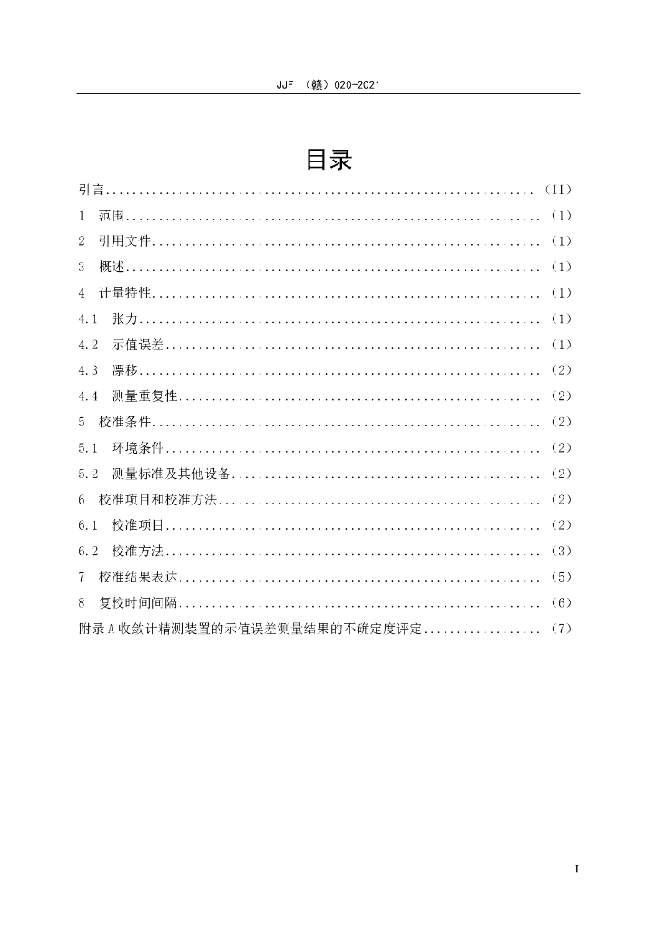 JJF(赣)020-2021 收敛计校准规范