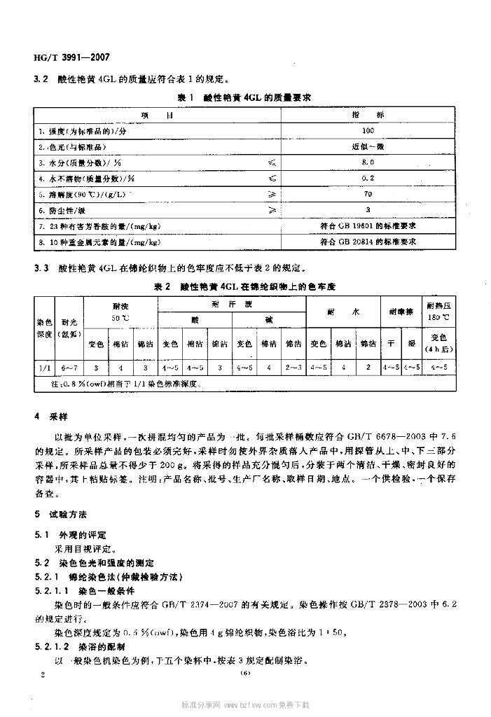 HG/T 3991-2007 酸性艳黄 4GL(C.I. 酸性黄 49)
