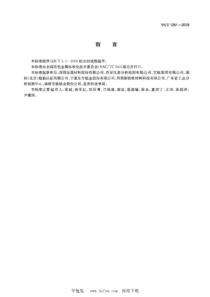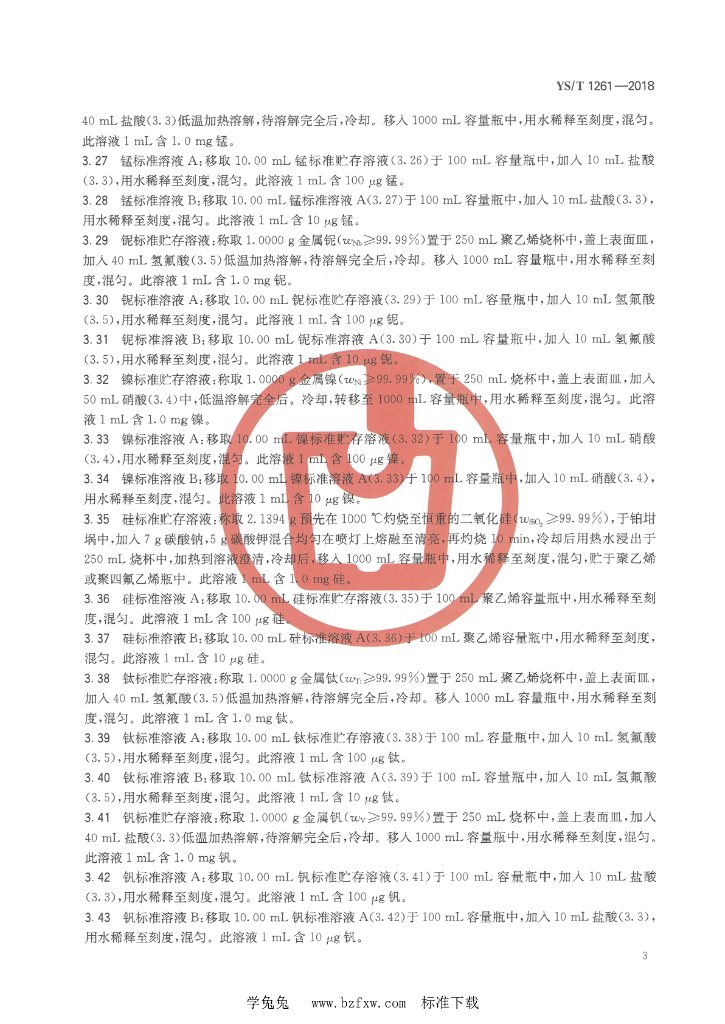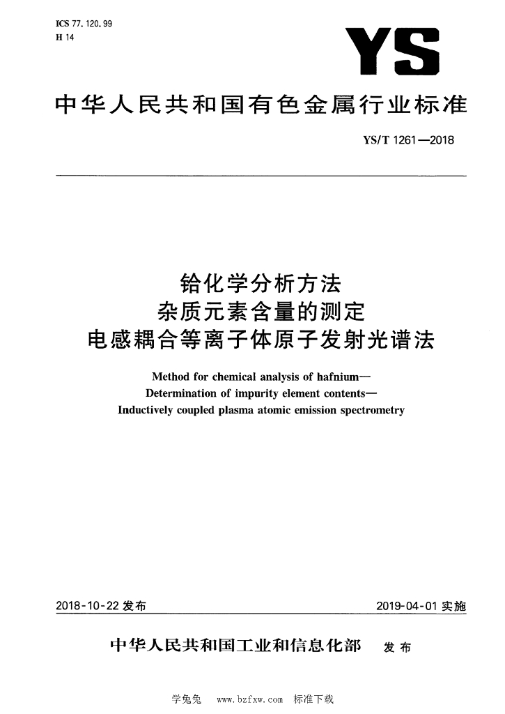 YS/T 1261-2018 铪化学分析方法 杂质元素含量的测定 电感耦合等离子体原子发射光谱法