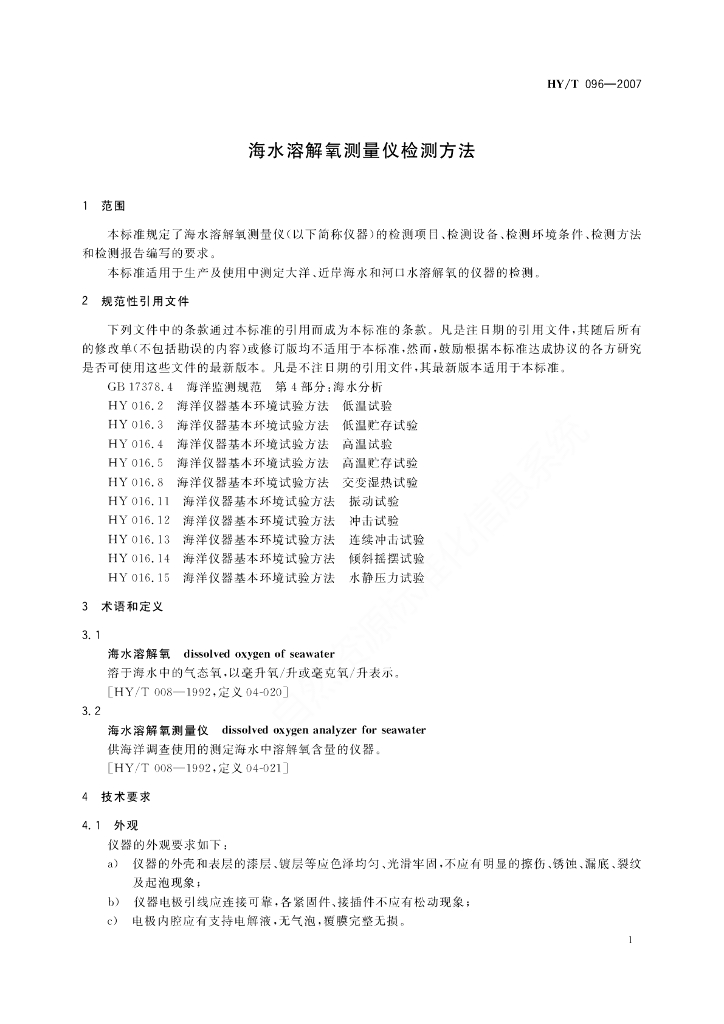HY/T 096-2007 海水溶解氧测量仪检测方法