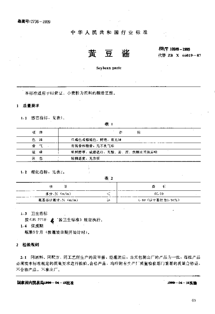 SB/T 10309-1999 黄豆酱