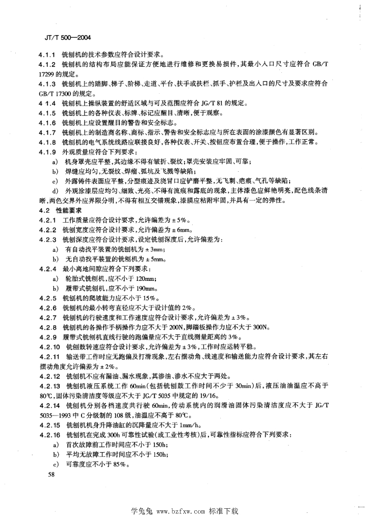 JT/T 500-2004 路面铣刨机
