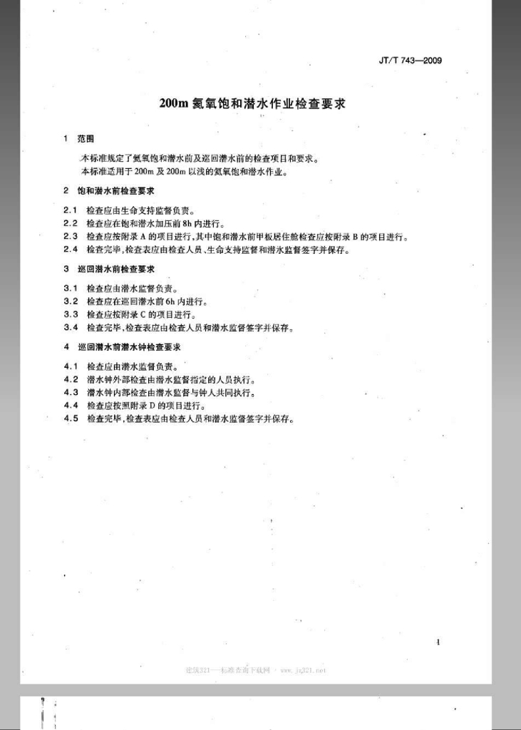 JT/T 743-2009 200m氦氧饱和潜水作业检查要求
