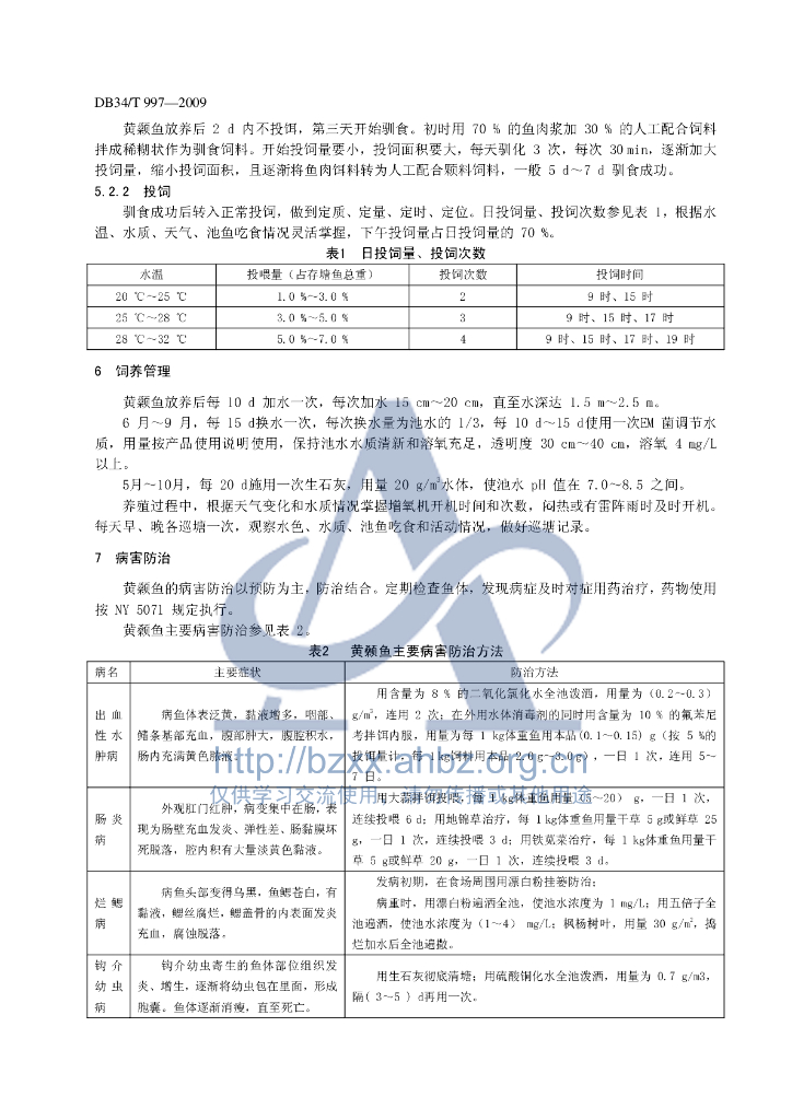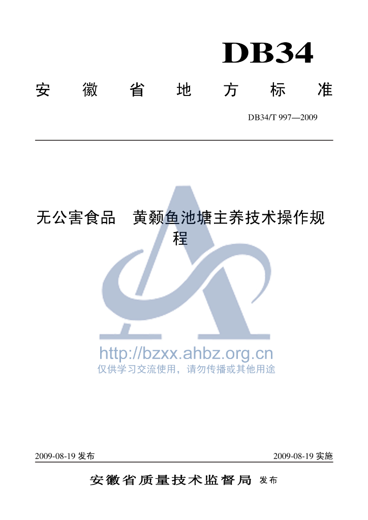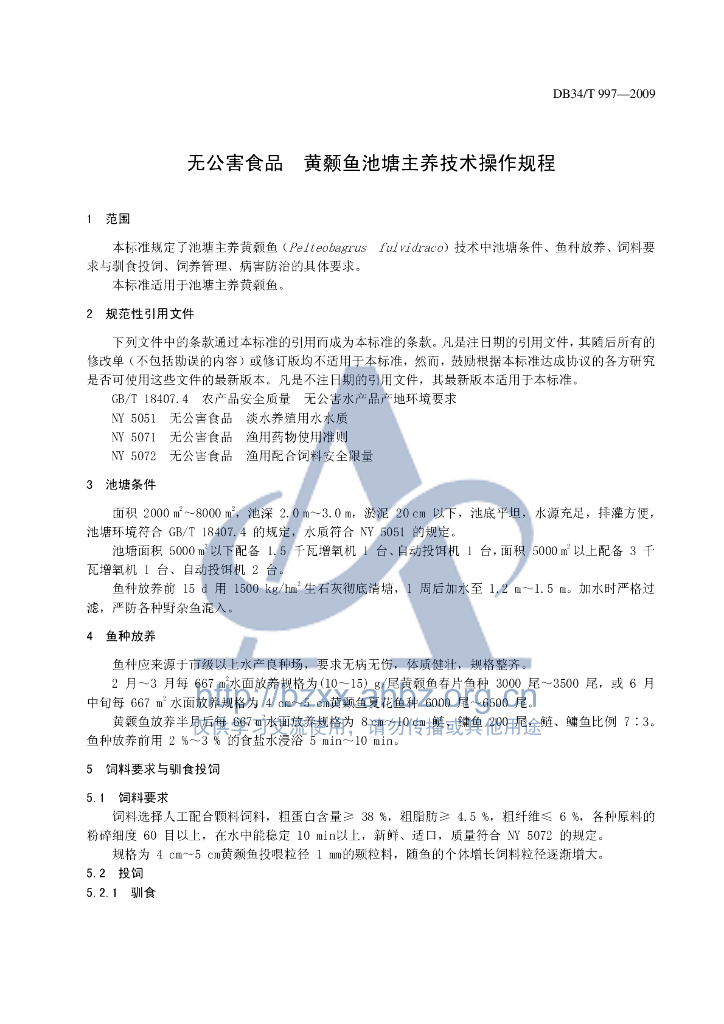DB34/T 997-2009 无公害食品 黄颡鱼池塘主养技术操作规程
