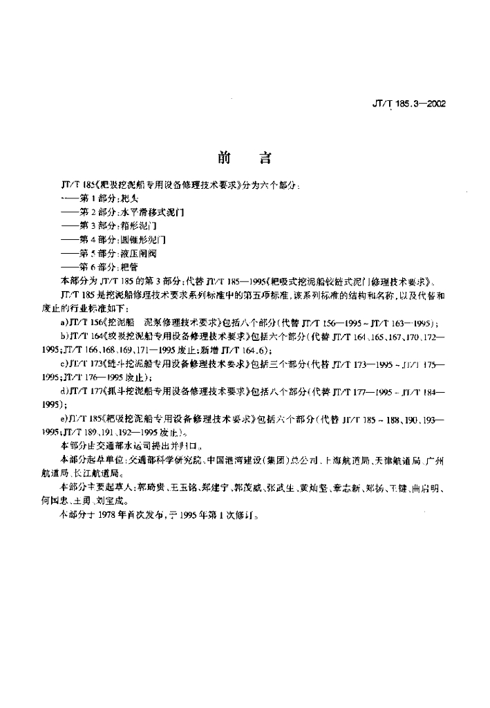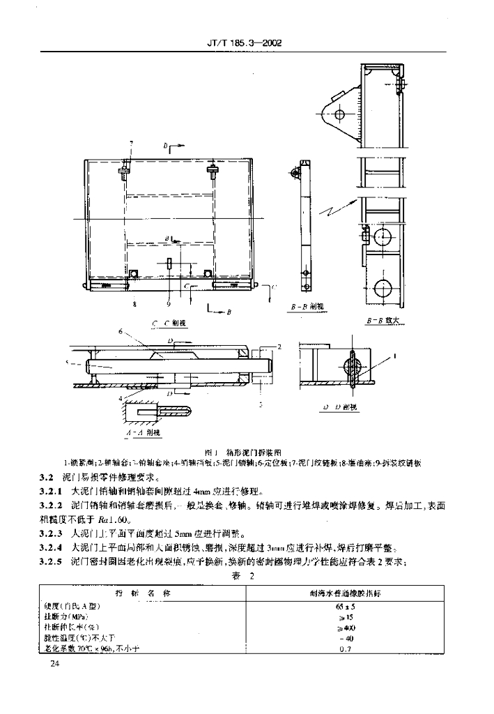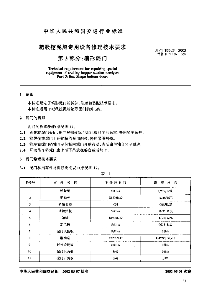 JT/T 185.3-2002 耙吸挖泥船专用设备修理技术要求 第3部分:箱形泥门