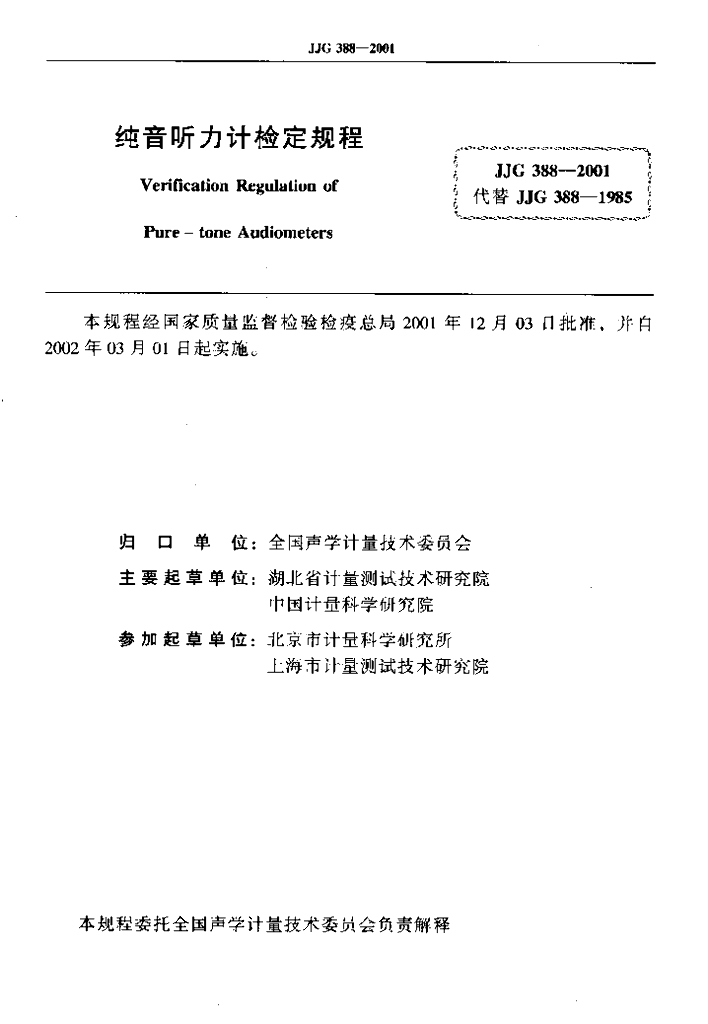 - 代替标准:JJG 388-1985
