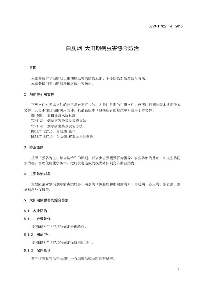 DB53/T 327.14-2010 白肋烟 大田期病虫害综合防治