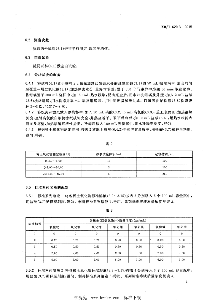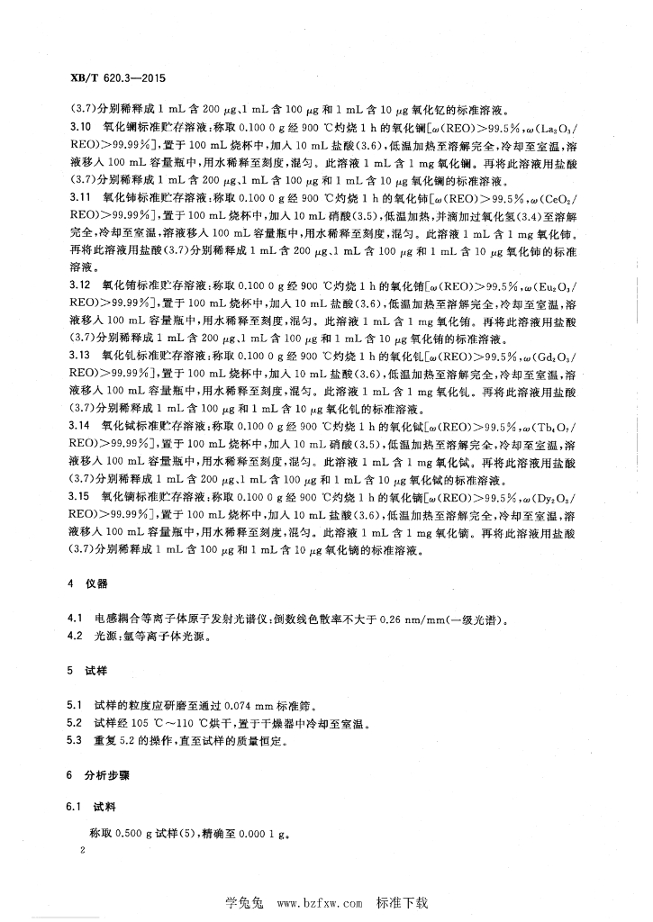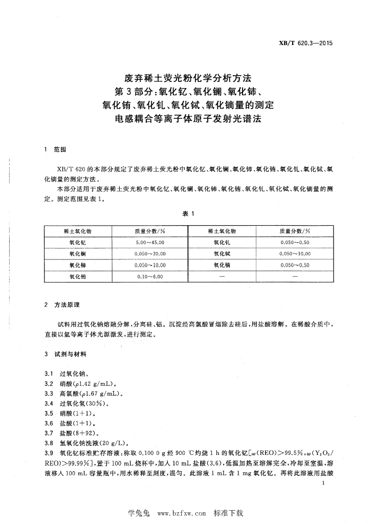 XB/T 620.3-2015 废弃稀土荧光粉化学分析方法 第3部分:氧化钇、氧化镧、氧化铈、氧化铕、氧化钆、氧化铽、氧化镝量的测定 电感耦合等离子体原子发射光谱法