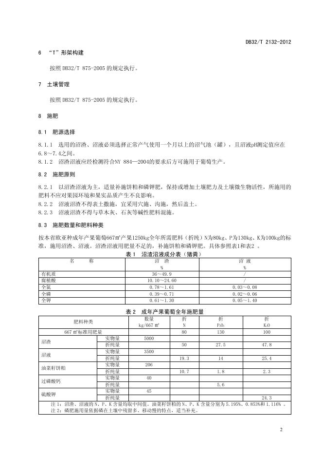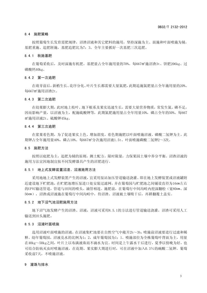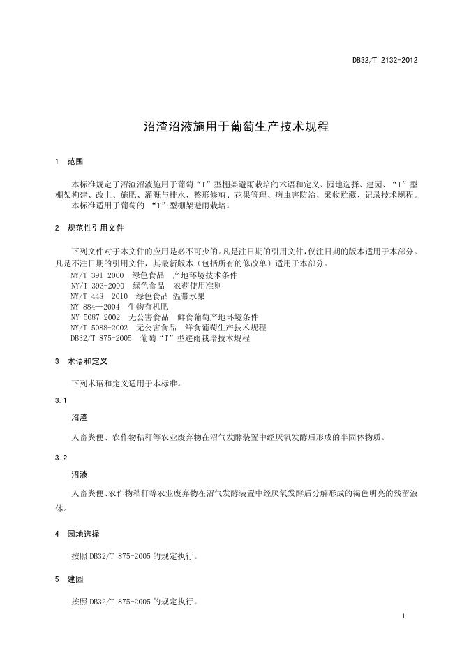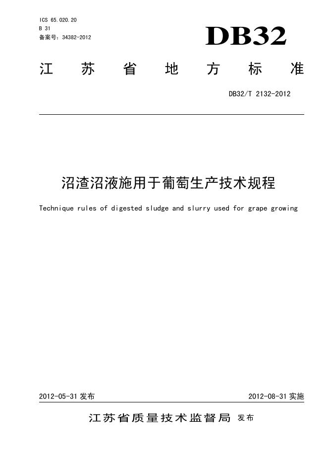 DB32/T 2132-2012 沼渣沼液施用于葡萄生产技术规程