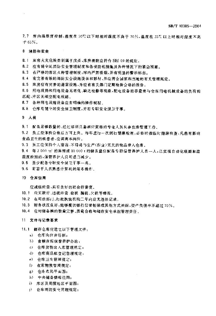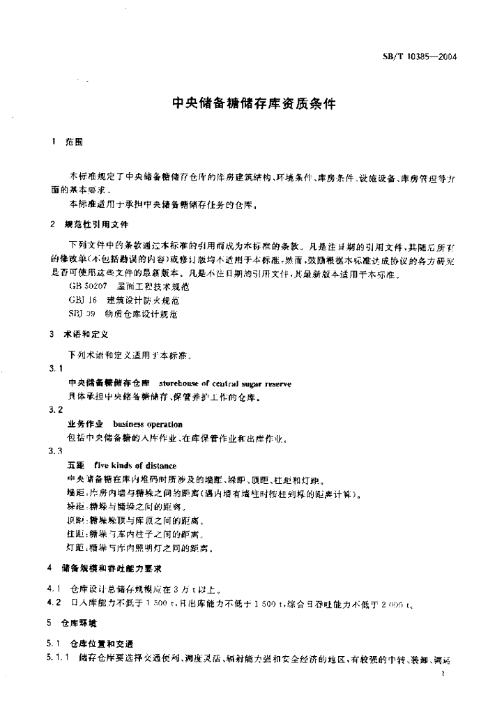SB/T 10385-2004 中央储备糖储存库资质条件