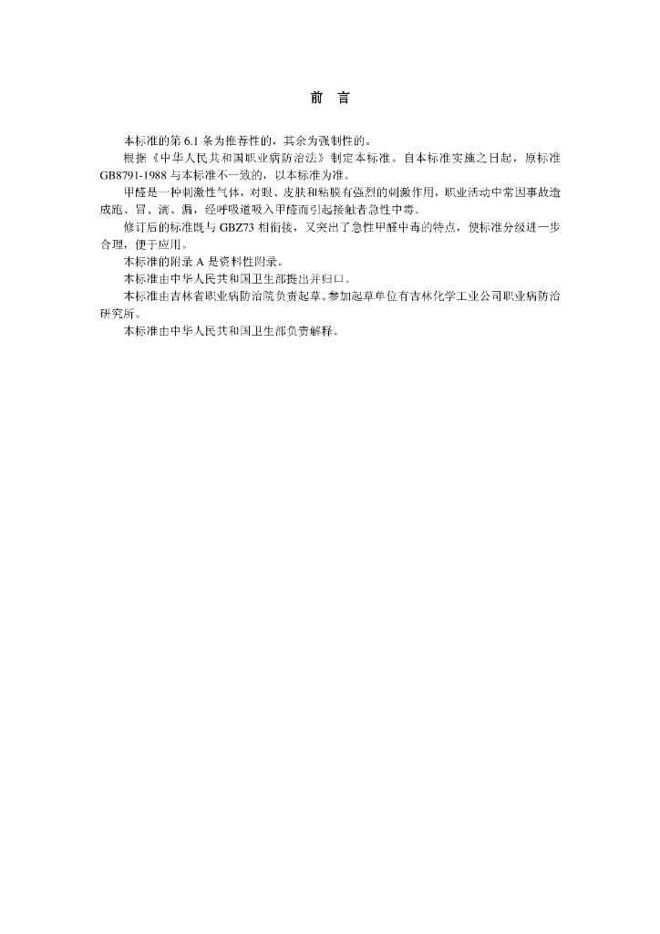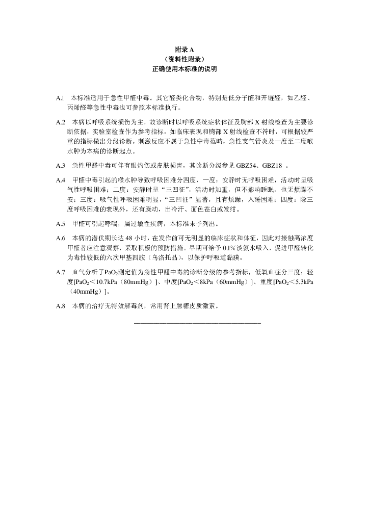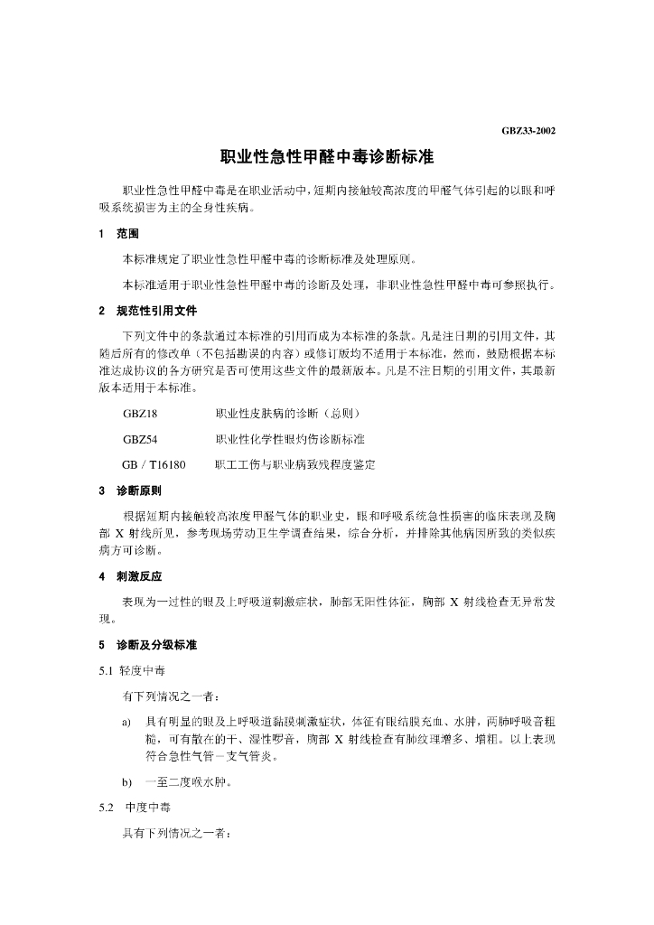 GBZ 33-2002 职业性急性甲醛中毒诊断标准
