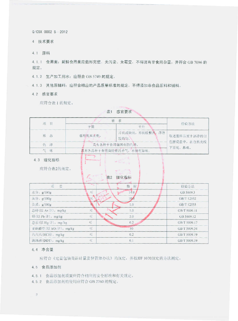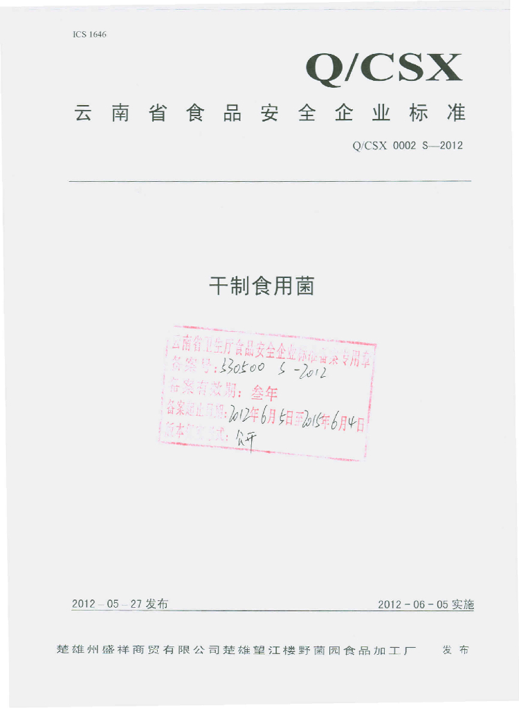 Q/CSX 0002S-2012 干制食用菌