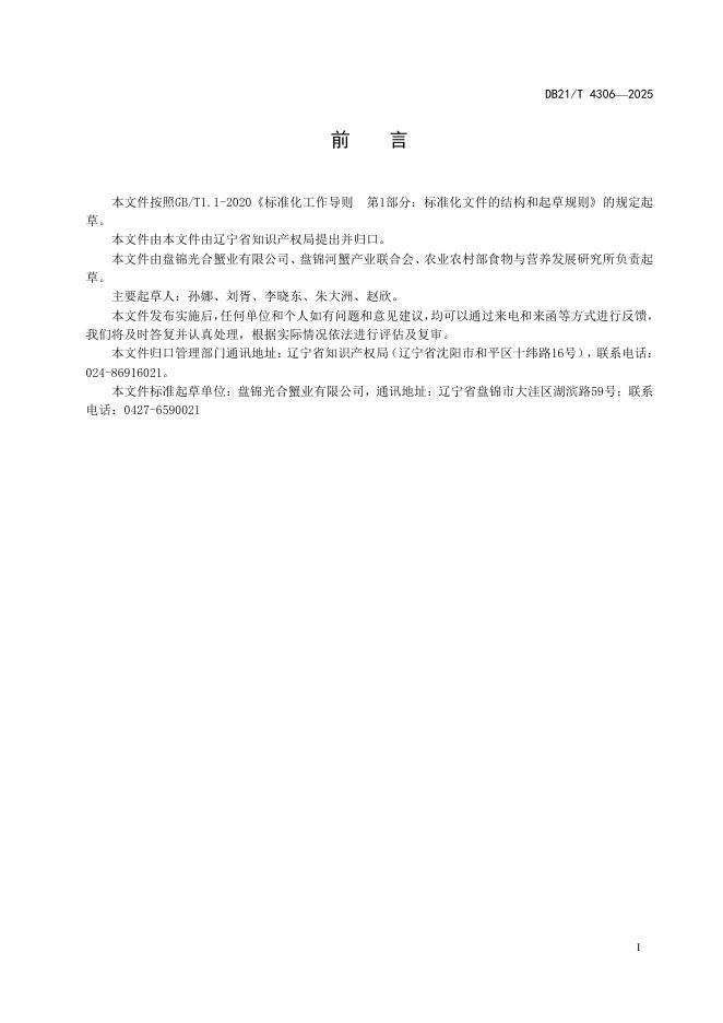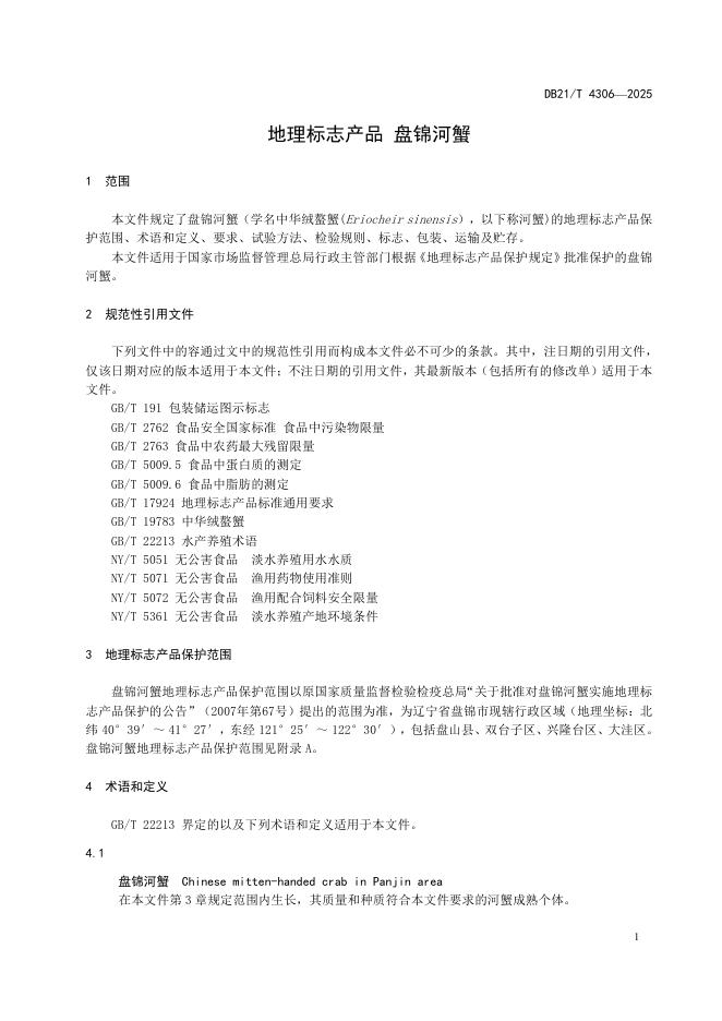 DB21/T 4306-2025 地理标志产品 盘锦河蟹
