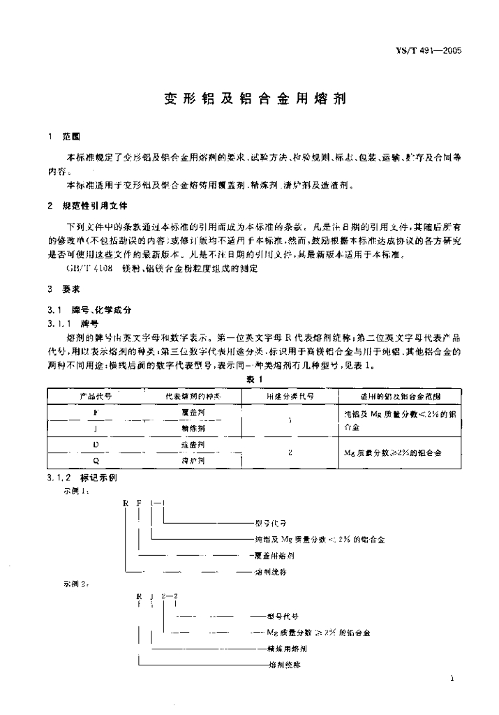 YS/T 491-2005 变形铝及铝合金用熔剂