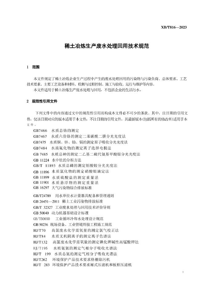 XB/T 816-2023 稀土冶炼生产废水处理回用技术规范