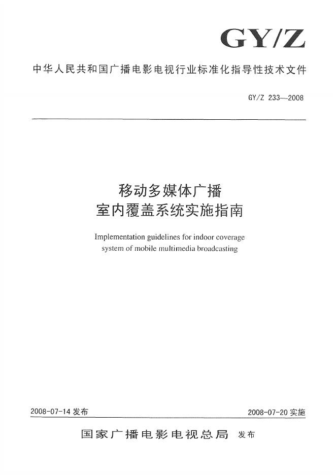 GY/T 233-2008 移动多媒体广播室内覆盖系统实施指南