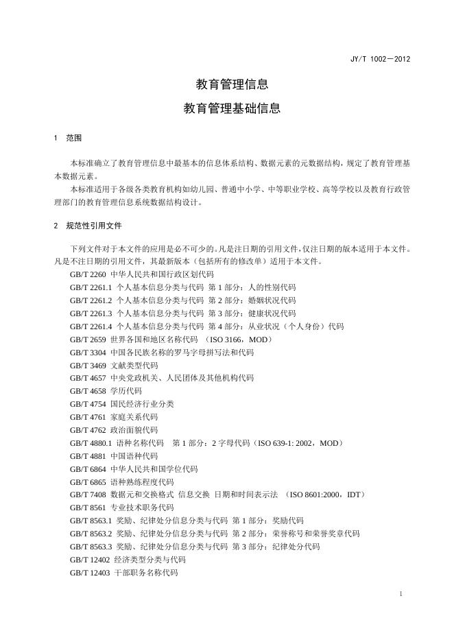 JY/T 1002-2012 教育管理信息 教育管理基础信息