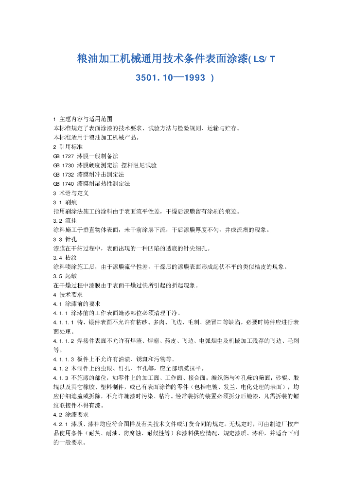 LS/T 3501.10-1993 粮油加工机械通用技术条件 表面涂漆