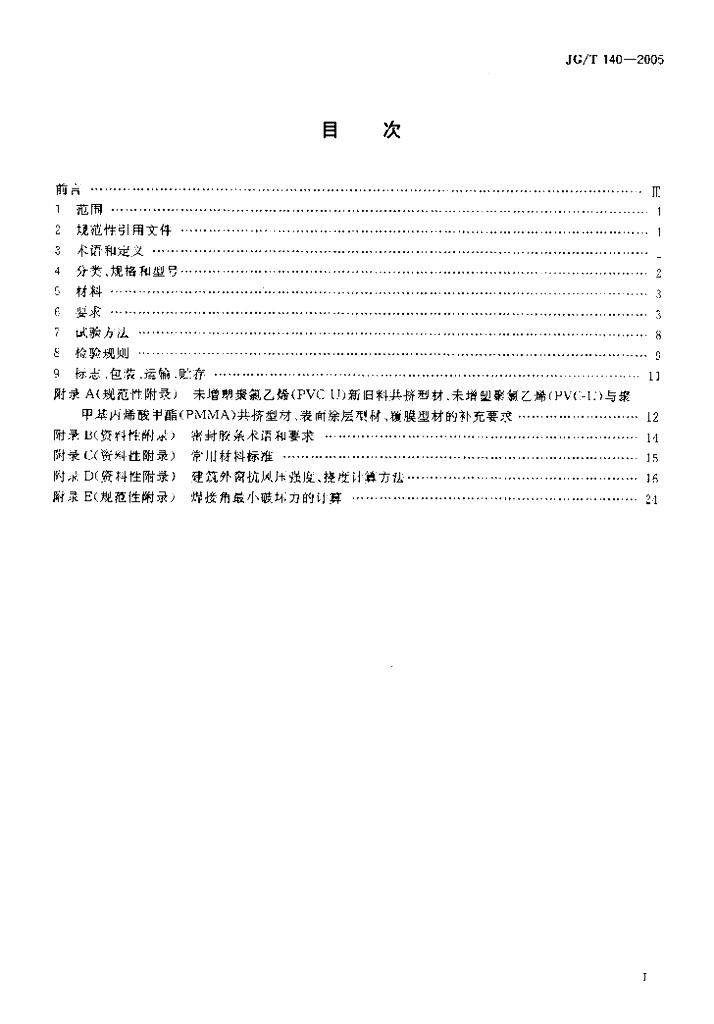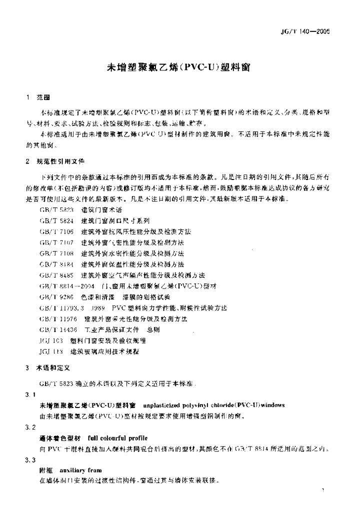 JG/T 140-2005 未增塑聚氯乙烯(PVC-U)塑料窗