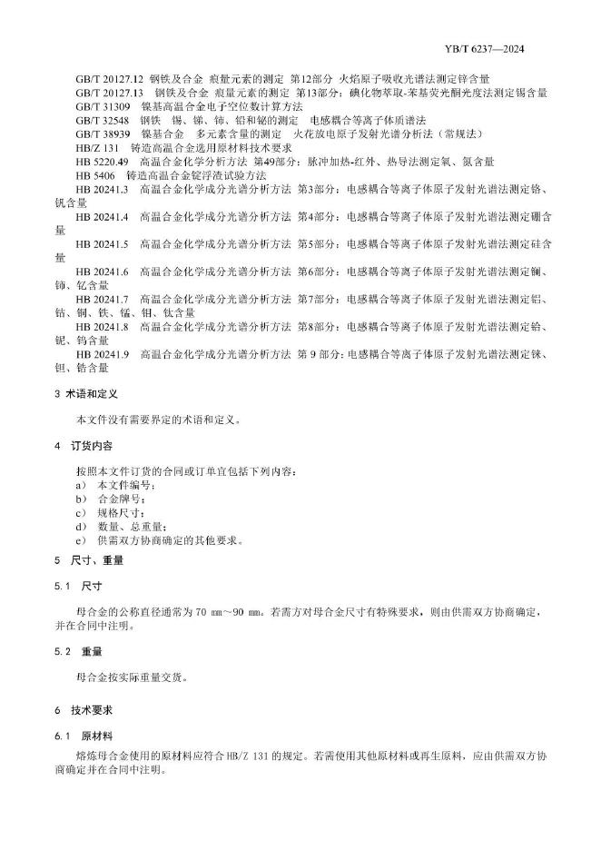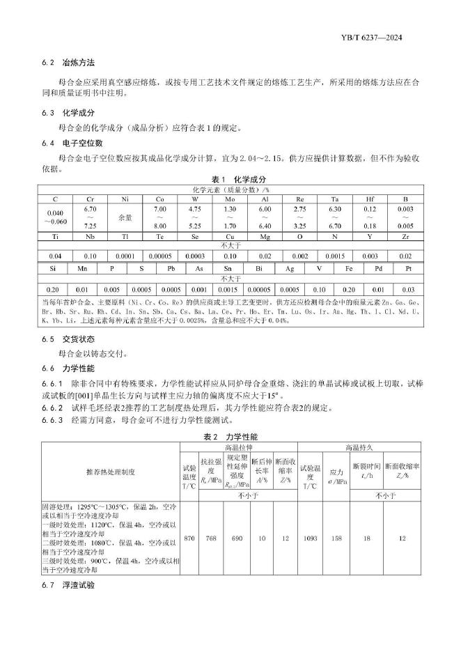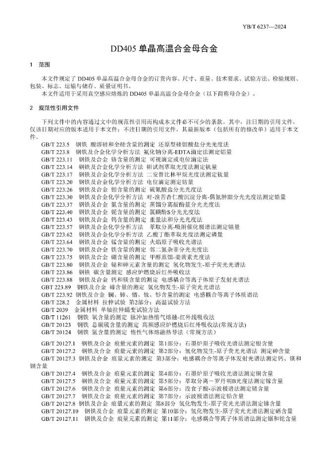 YB/T 6237-2024 DD405单晶高温合金母合金