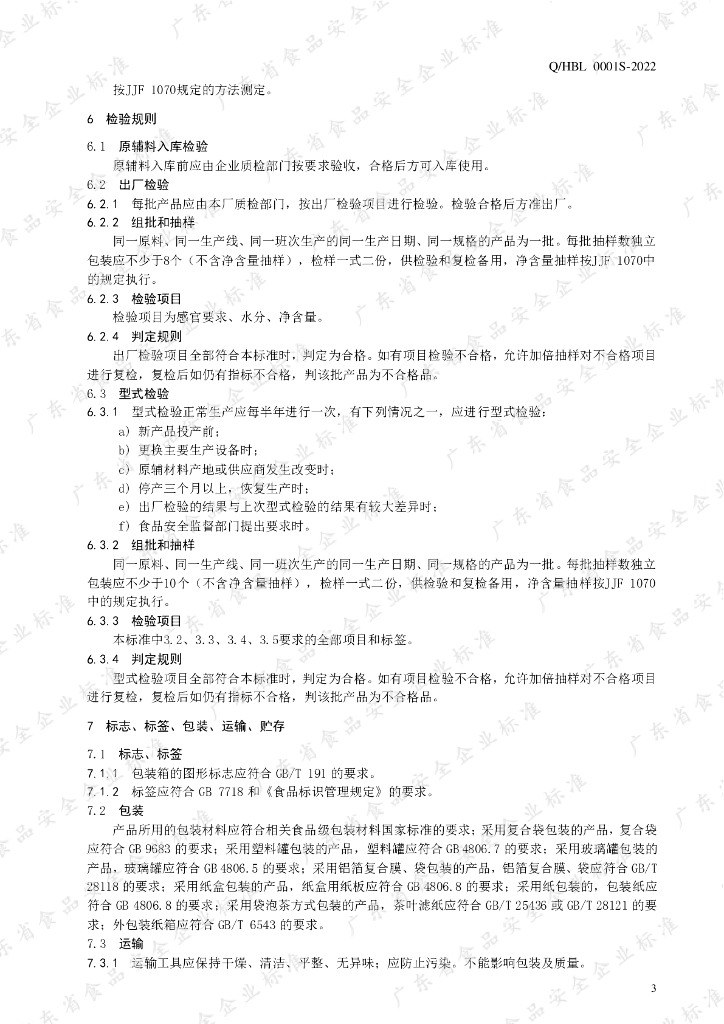 Q/HBL 0001S-2022 龙门年桔含茶制品