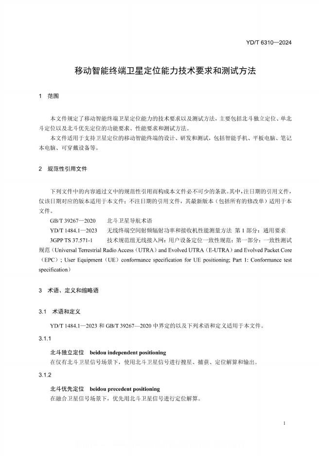 YD/T 6310-2024 移动智能终端卫星定位能力技术要求和测试方法