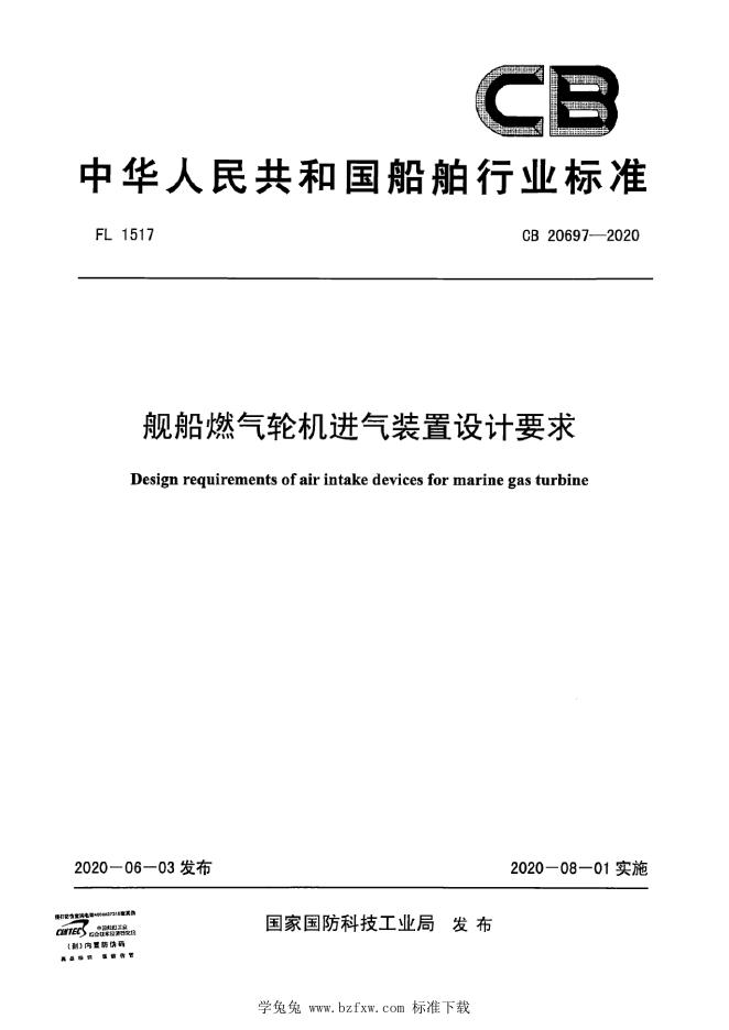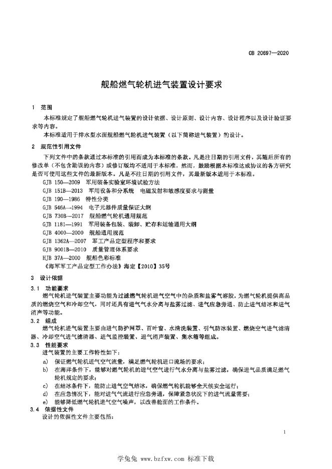 CB 20697-2020 舰船燃气轮机进气装置设计要求